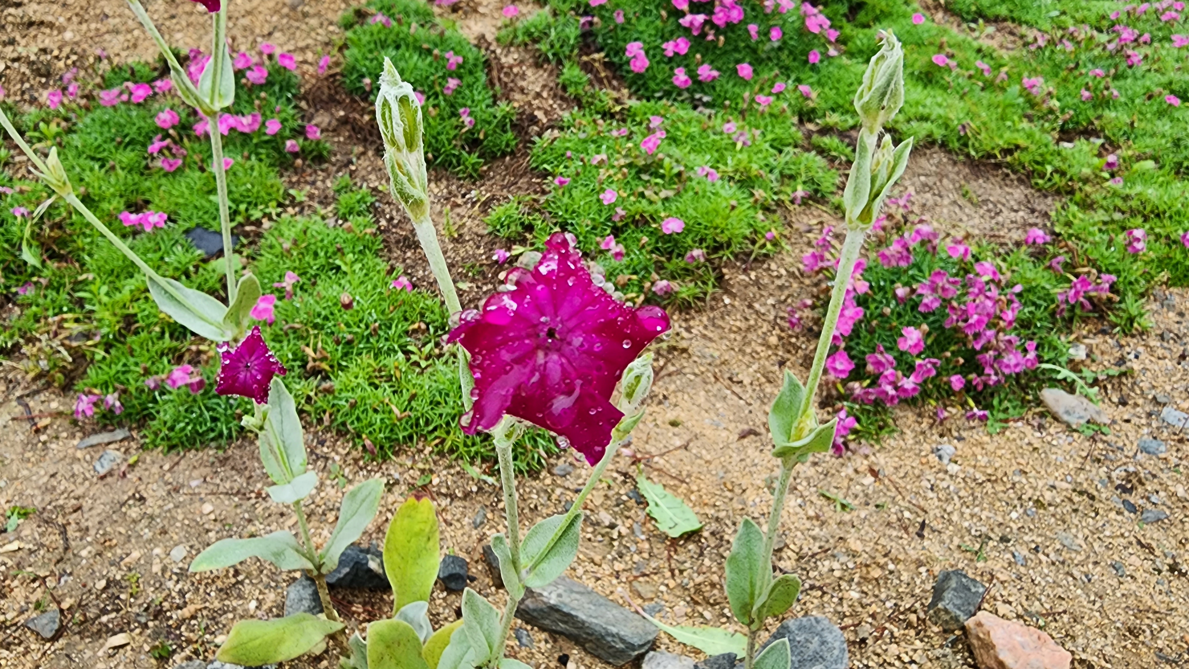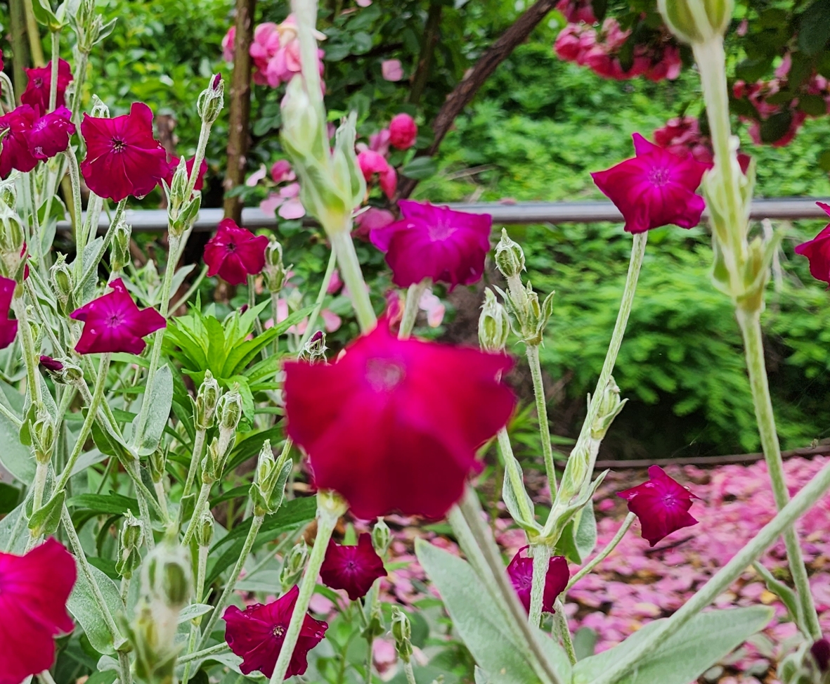 은빛 털을 가진 우단동자 잎과 줄기가 더해져서 우단 동자를 이국적이게 보이게 합니다.